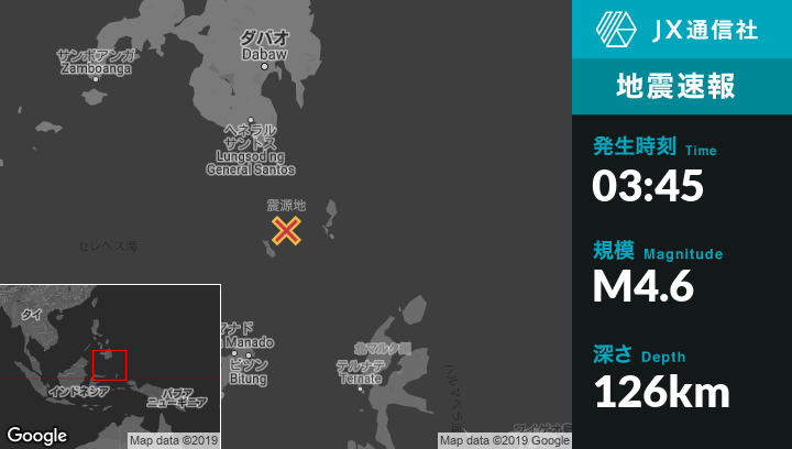 | 震源地 | フィリピンのSaranganiから南南東158kmの地点 |