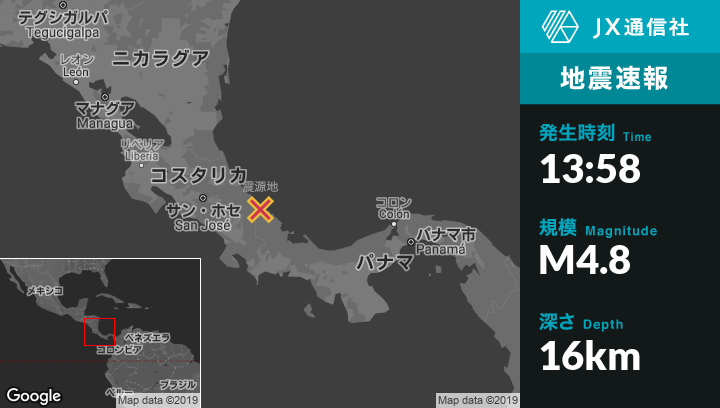 | 震源地 | コスタリカのPuerto Limonから南東31kmの地点 |