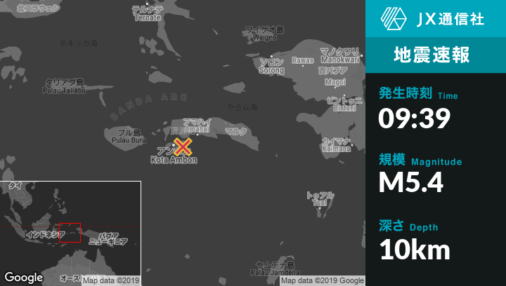 | 震源地 | インドネシアのPelauから南10kmの地点 |