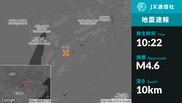 | 震源地 | ロシアのKurumkanから北東107kmの地点 |