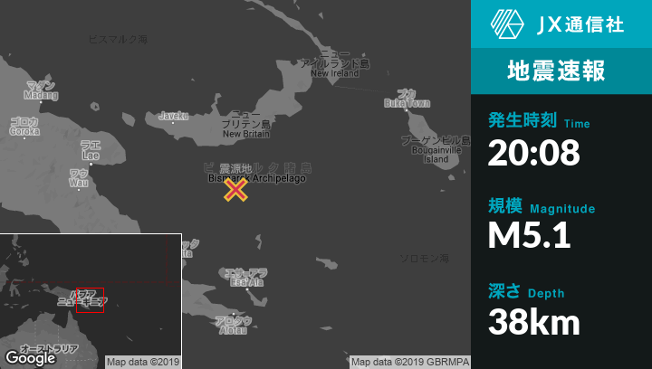 | 震源地 | パプアニューギニアのKandrianから南東153kmの地点 |