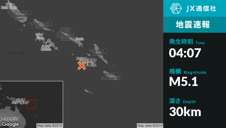 | 震源地 | ソロモン諸島のHoniaraから南南西39kmの地点 |