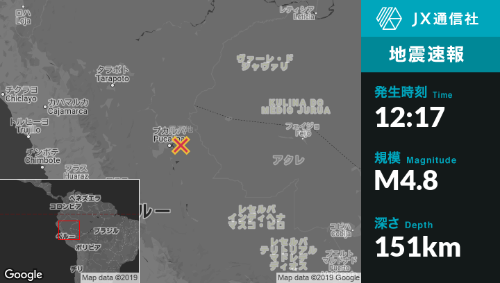 | 震源地 | ペルーのPucallpaから東北東38kmの地点 |