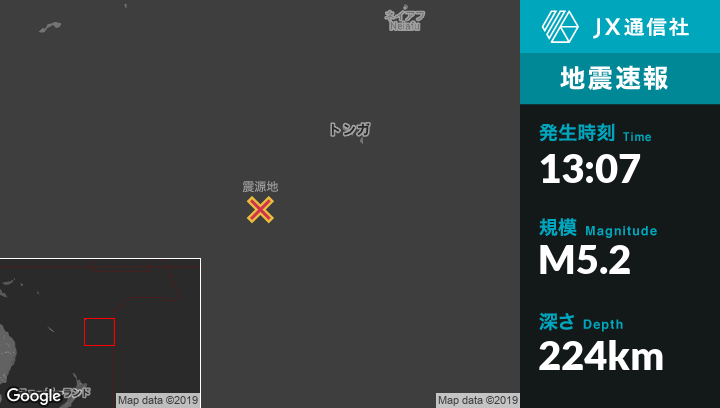 | 震源地 | トンガのVainiから南西261kmの地点 |