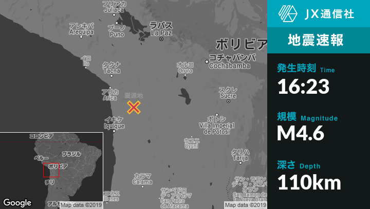 9月28日 16:23頃、チリのPutreから南南東110kmの地点でM4.6の地震がありました。