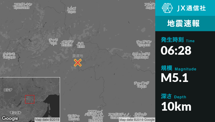 | 震源地 | ロシアのNovaya Charaから東南東122kmの地点 |