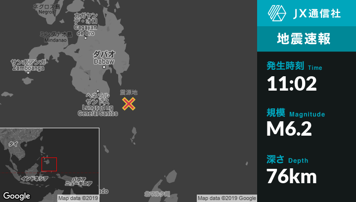 | 震源地 | フィリピンのPondaguitanから南南東84kmの地点 |