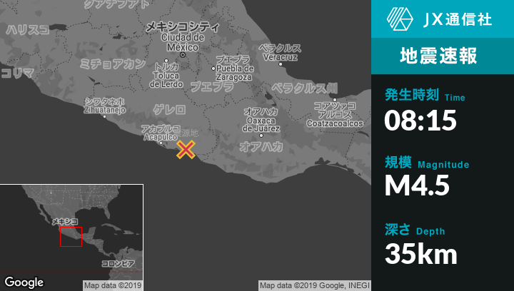 | 震源地 | メキシコのCruz Grandeから北東9kmの地点 |