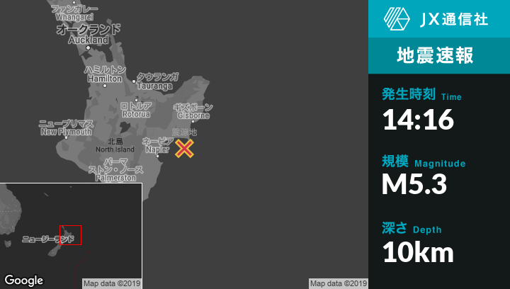 | 震源地 | ニュージーランドのWairoaから南東37kmの地点 |