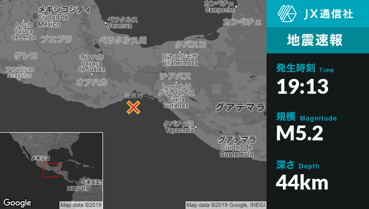 | 震源地 | メキシコのSan Mateo del Marから南39kmの地点 |