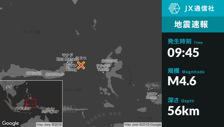 | 震源地 | インドネシアのBitungから東67kmの地点 |