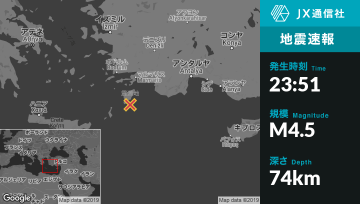 | 震源地 | ギリシャのLardosから南13kmの地点 |