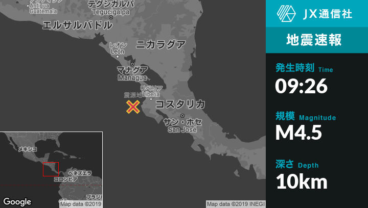 | 震源地 | コスタリカのSardinalから西63kmの地点 |