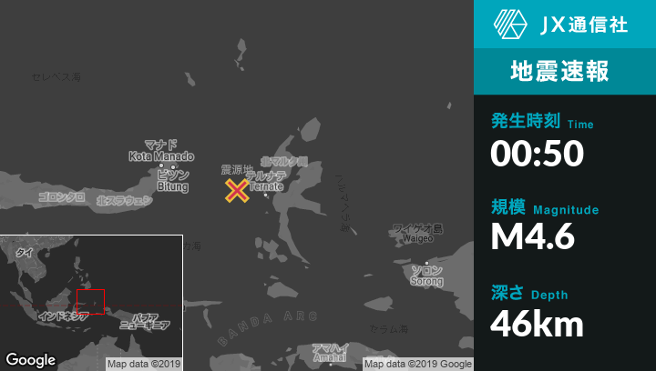 | 震源地 | インドネシアのKota Ternateから西北西81kmの地点 |