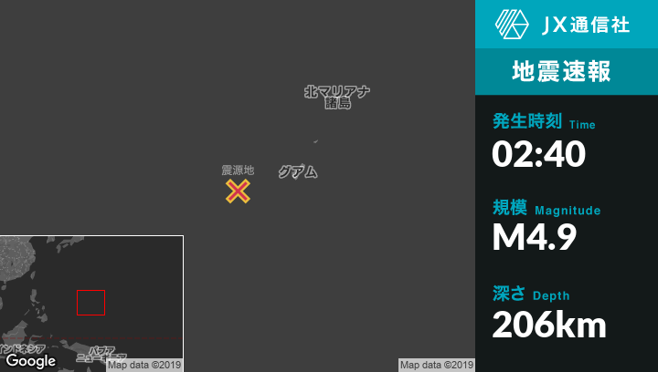| 震源地 | グアムのMerizo Villageから西146kmの地点 |