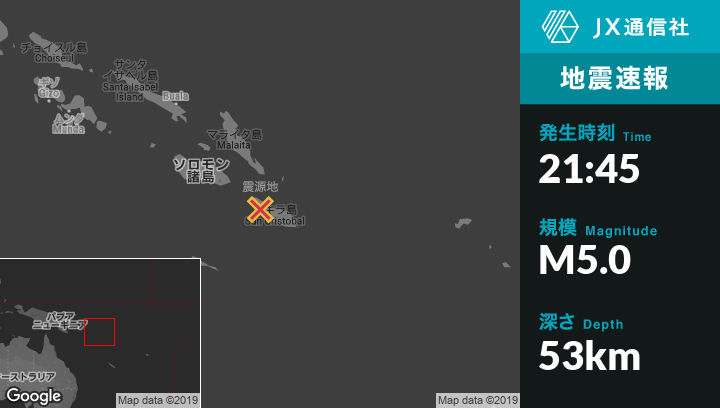 | 震源地 | ソロモン諸島のKirakiraから西北西50kmの地点 |