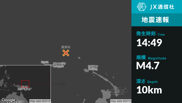 | 震源地 | パプアニューギニアのLorengauから北東182kmの地点 |