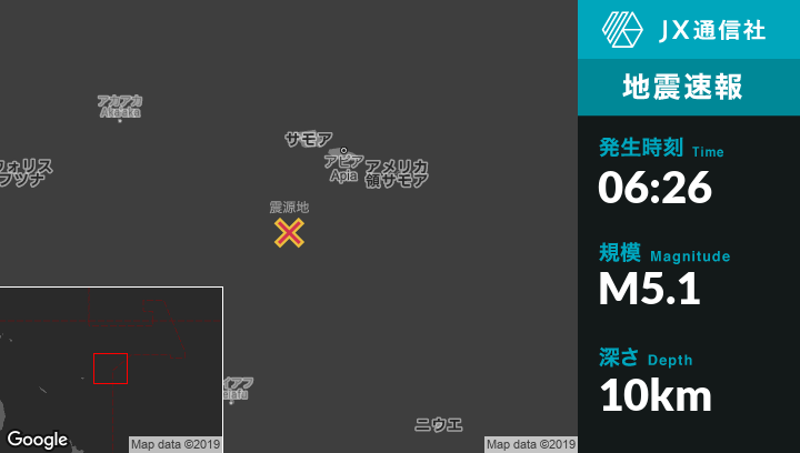 10月10日 06:26頃、トンガのHihifoから北東122kmの地点でM5.1の地震がありました。