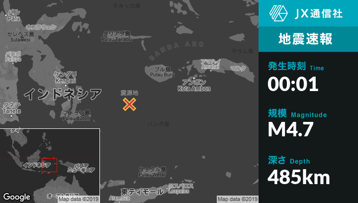 | 震源地 | インドネシアのLeksulaから南西165kmの地点 |