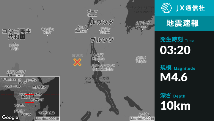 | 震源地 | コンゴ民主共和国のKongoloから東北東138kmの地点 |