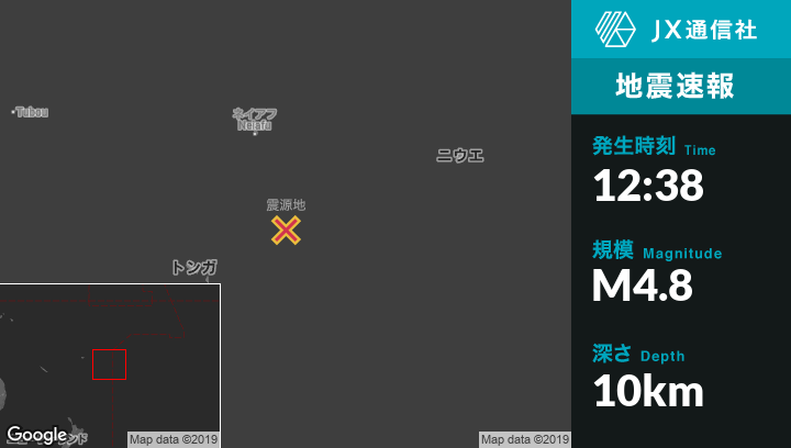 | 震源地 | トンガのPangaiから東南東120kmの地点 |