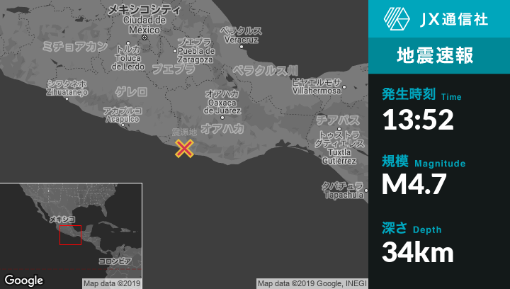 | 震源地 | メキシコのSanta Maria Huazolotitlanから南東2kmの地点 |