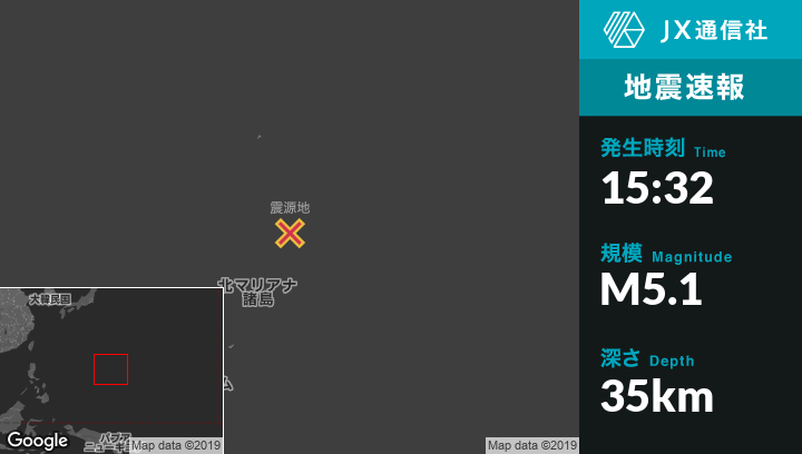 | 震源地 | 北マリアナ諸島のAnatahanから東73kmの地点 |