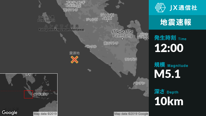 | 震源地 | インドネシアのBengkuluから西南西149kmの地点 |