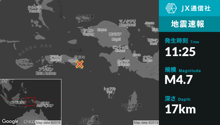 | 震源地 | インドネシアのAmahaiから東188kmの地点 |