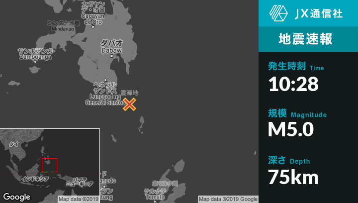 | 震源地 | フィリピンのSaranganiから東南東88kmの地点 |