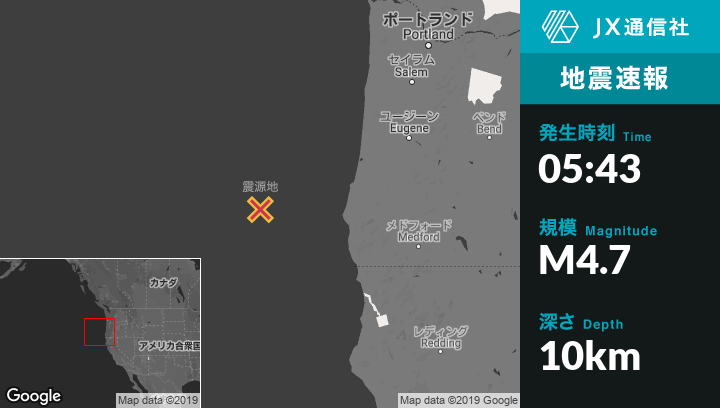 | 震源地 | オレゴンのPort Orfordから西北西155kmの地点 |