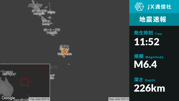 | 震源地 | バヌアツのIsangelから北北東59kmの地点 |