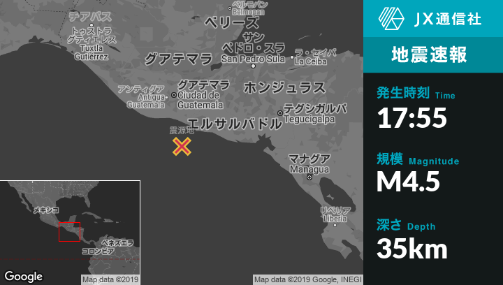 | 震源地 | エルサルバドルのAcajutlaから南西67kmの地点 |