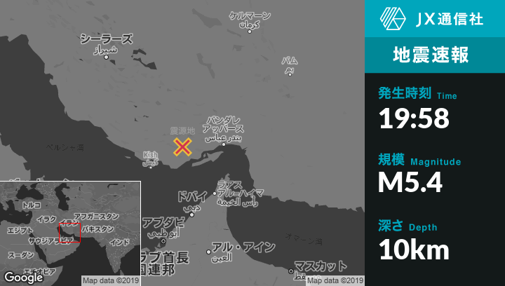 10月21日 19:58頃、イランのBandar-e Lengehから北73kmの地点でM5.4の地震がありました。