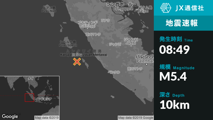 | 震源地 | インドネシアのMuara Siberutから南南東125kmの地点 |