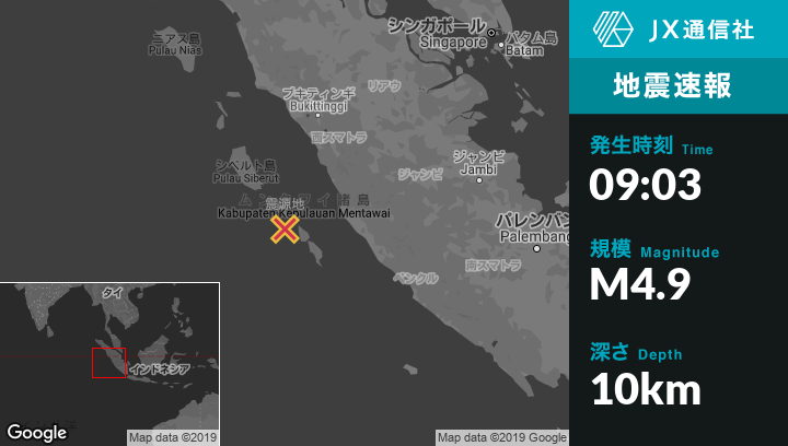 | 震源地 | インドネシアのMuara Siberutから南南東110kmの地点 |