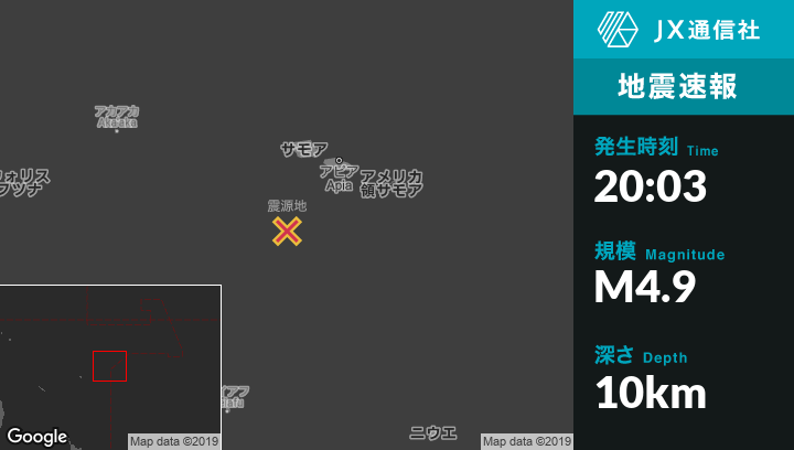 | 震源地 | トンガのHihifoから北東139kmの地点 |