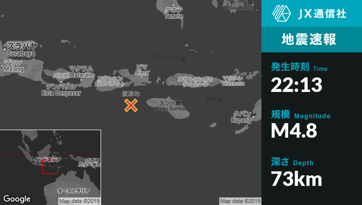 | 震源地 | インドネシアのKawangohariから西81kmの地点 |
