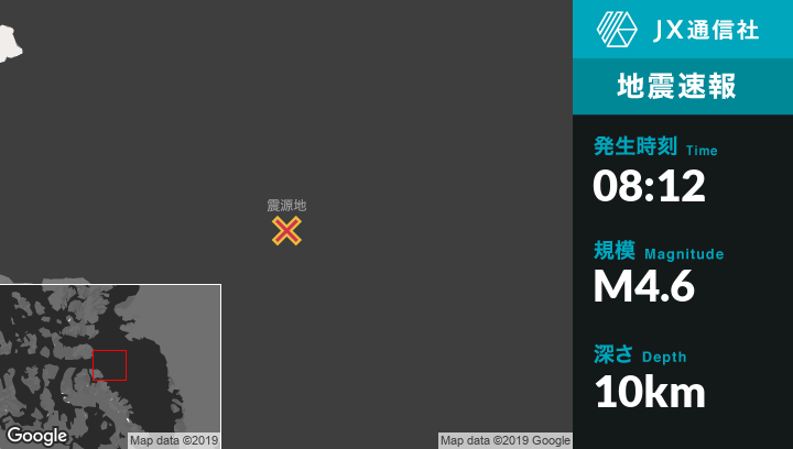 10月23日 08:12頃、カナダのPond Inletから北東187kmの地点でM4.6の地震がありました。