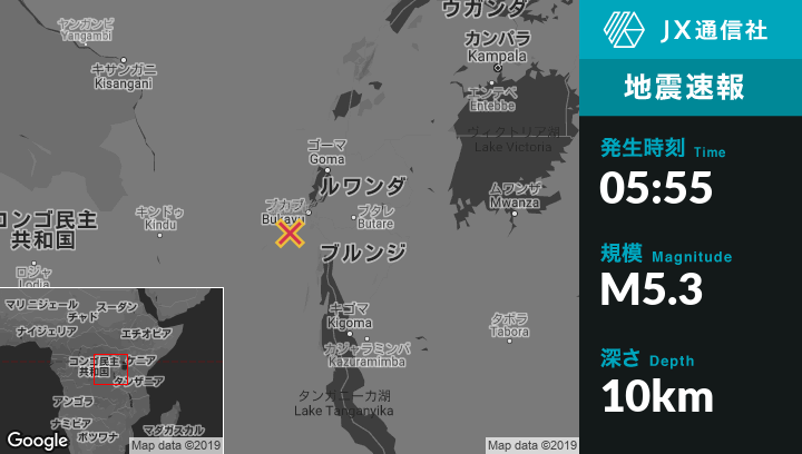 | 震源地 | コンゴ民主共和国のBukavuから南西52kmの地点 |