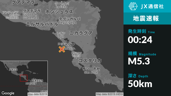 | 震源地 | ニカラグアのMasachapaから南西38kmの地点 |
