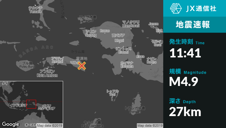 | 震源地 | インドネシアのAmahaiから東186kmの地点 |