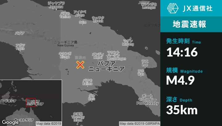 | 震源地 | パプアニューギニアのLake Murrayから東北東115kmの地点 |