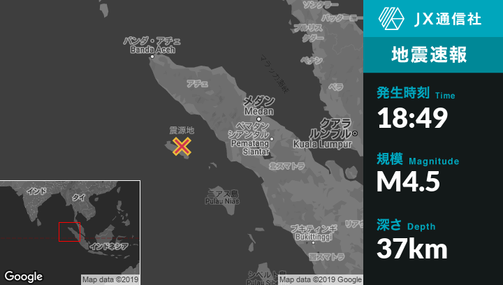 | 震源地 | インドネシアのSinabangから北北西44kmの地点 |