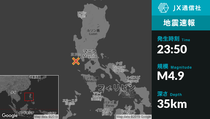 | 震源地 | フィリピンのSabangから西南西33kmの地点 |