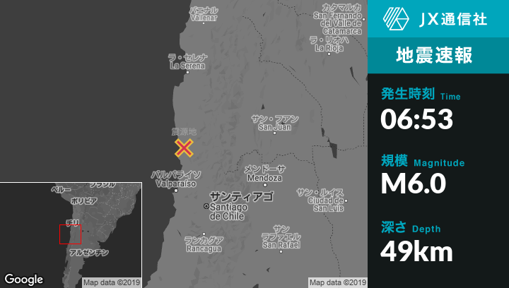 | 震源地 | チリのIllapelから南西28kmの地点 |
