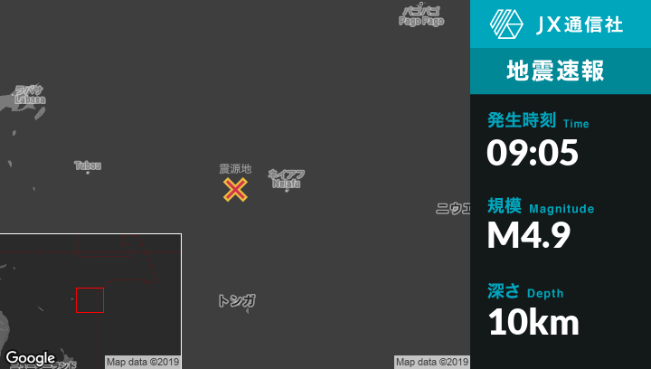 | 震源地 | トンガのNeiafuから西133kmの地点 |