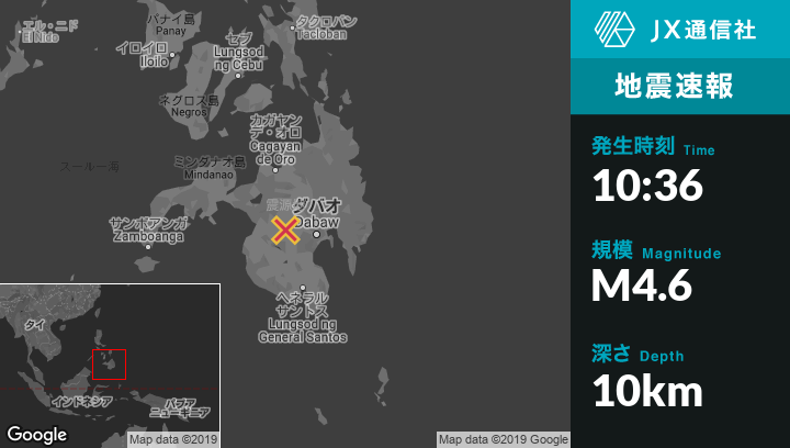 | 震源地 | フィリピンのLilionganから北東4kmの地点 |