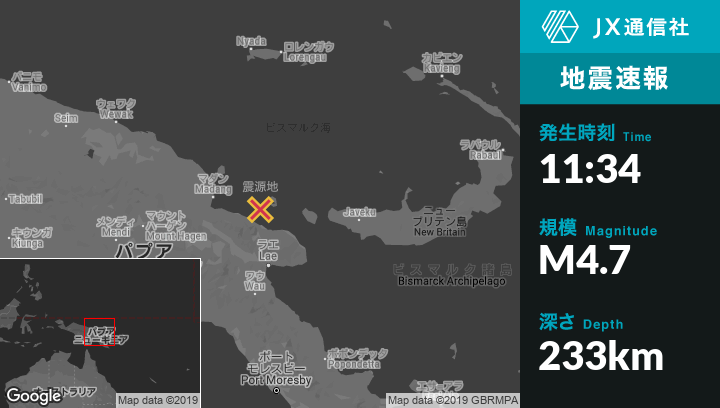 | 震源地 | パプアニューギニアのMadangから東113kmの地点 |