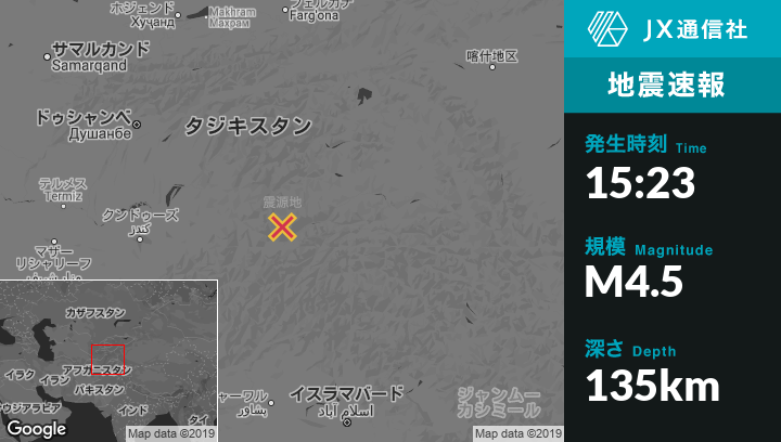 | 震源地 | タジキスタンのRoshtqal'aから南南西28kmの地点 |